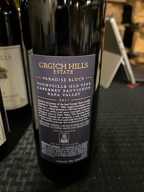 • 2021 Grgich Hills Cabernet Sauvignon Paradise Block Old Vine – USA, California, Napa Valley, Yountville